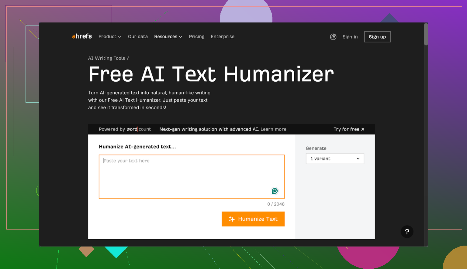 - You already pay for Ahrefs Word Count Pro and want a quick way to smooth out rough AI output without caring much about detection.