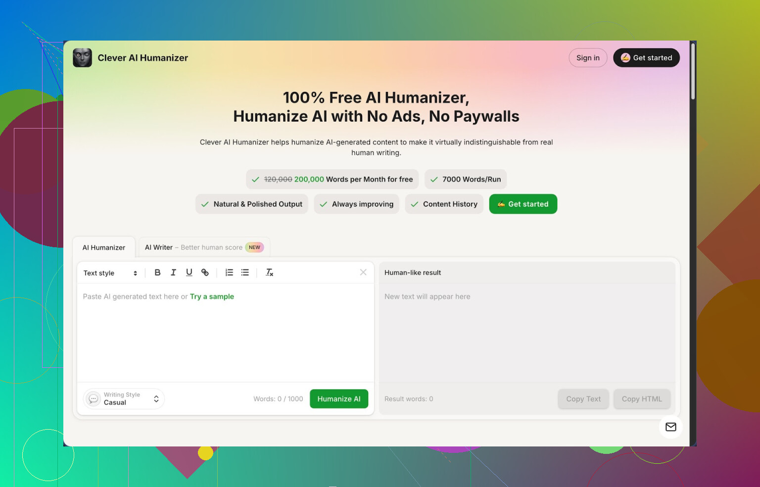 ブログ記事・レポート・クライアント向け資料などのワークフローでは、本当に困るのは検閲そのものより「トースターが書いたみたいな文章」になってしまうことです。Clever Ai Humanizer は、特に Casual スタイルでこの問題をかなりうまく解消してくれます。