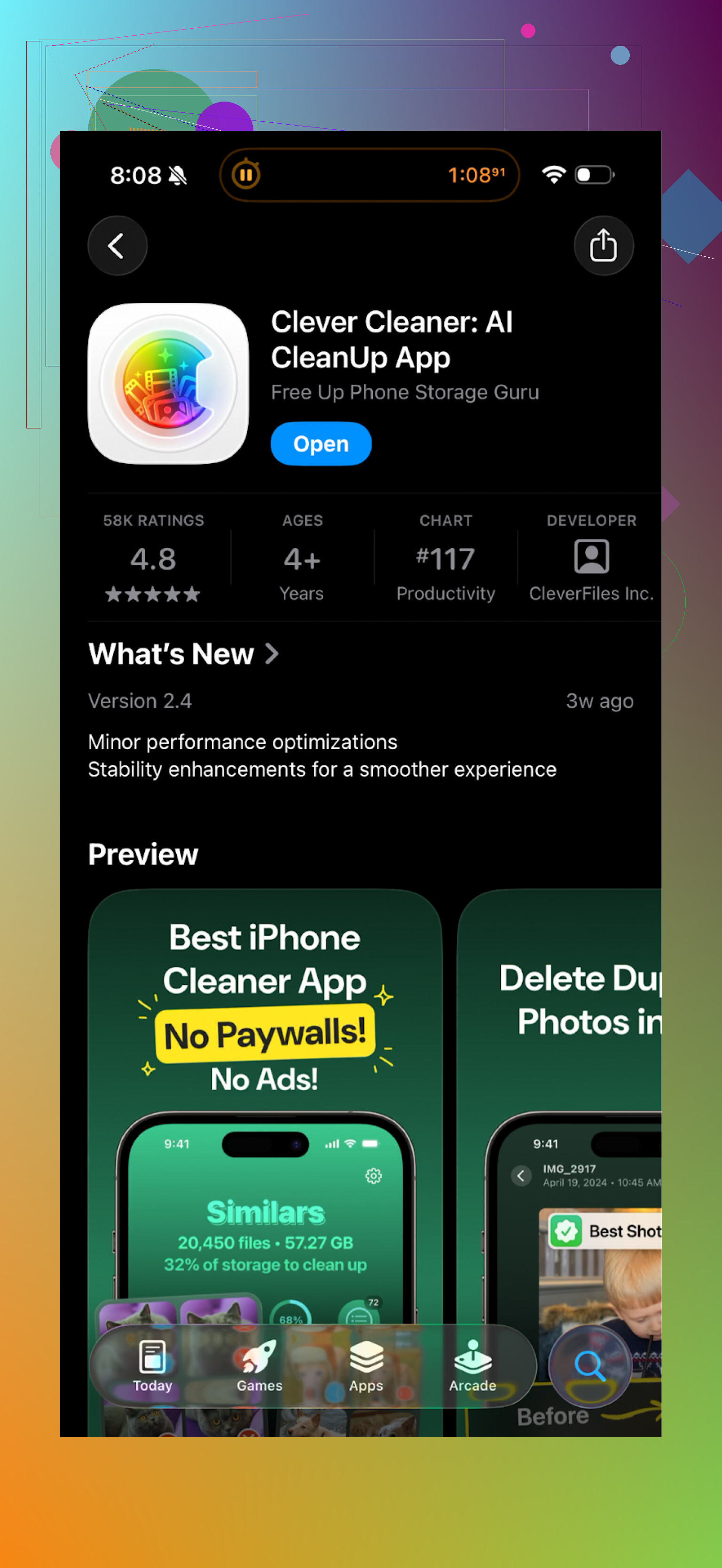 Used Cleanup App on and off for about a month on my iPhone. Short version: it’s “legit” in the sense that it’s not some virus trying to brick your phone, but the experience is pretty borderline in terms of how hard it leans on monetization.