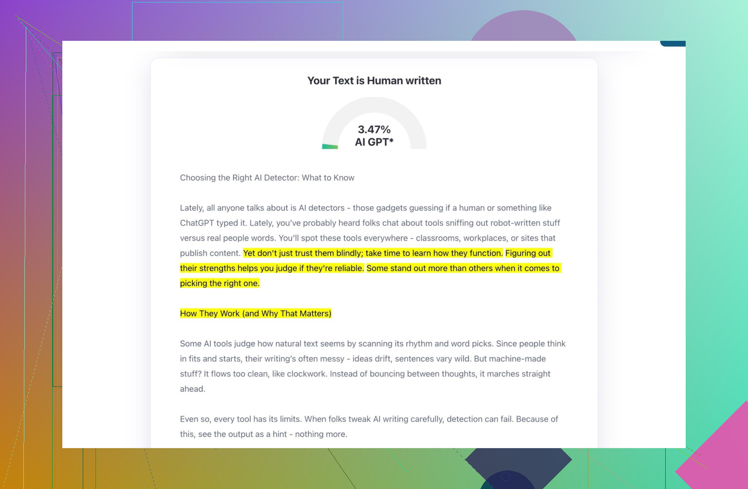 Here’s where I sorta buck the trend: tools like Clever AI Humanizer are fine for sneaking past detection, but I’m not convinced they make content truly human. Most of the time, stuff I run through a humanizer comes out “less mechanical,” sure, but the voice still has no quirks or opinions—it’s basically a plain bagel. And yeah, if detectors are your only hurdle, fire away. But real humans (esp. your readers, bosses, etc.) still smell “AI bland” a mile away.