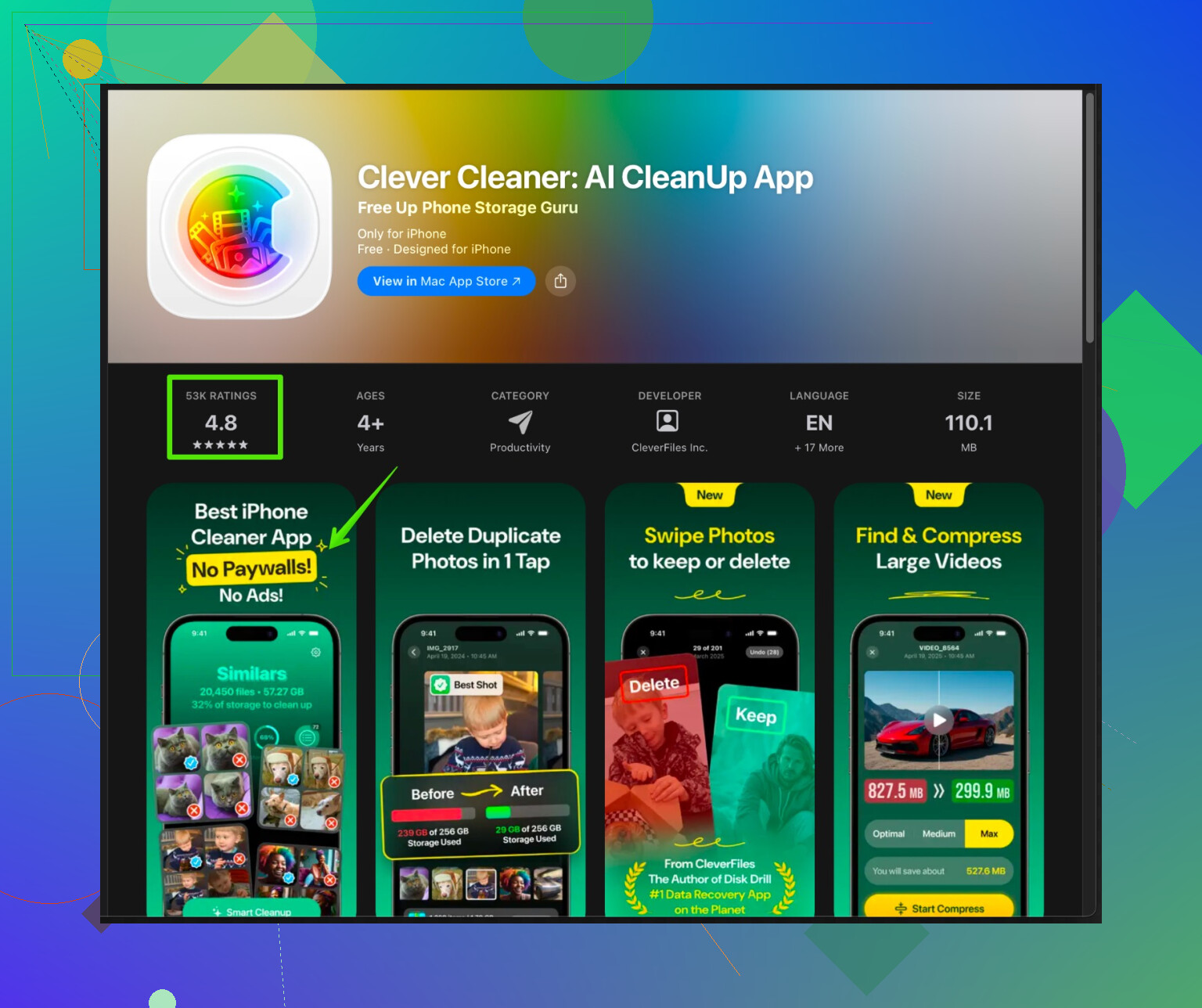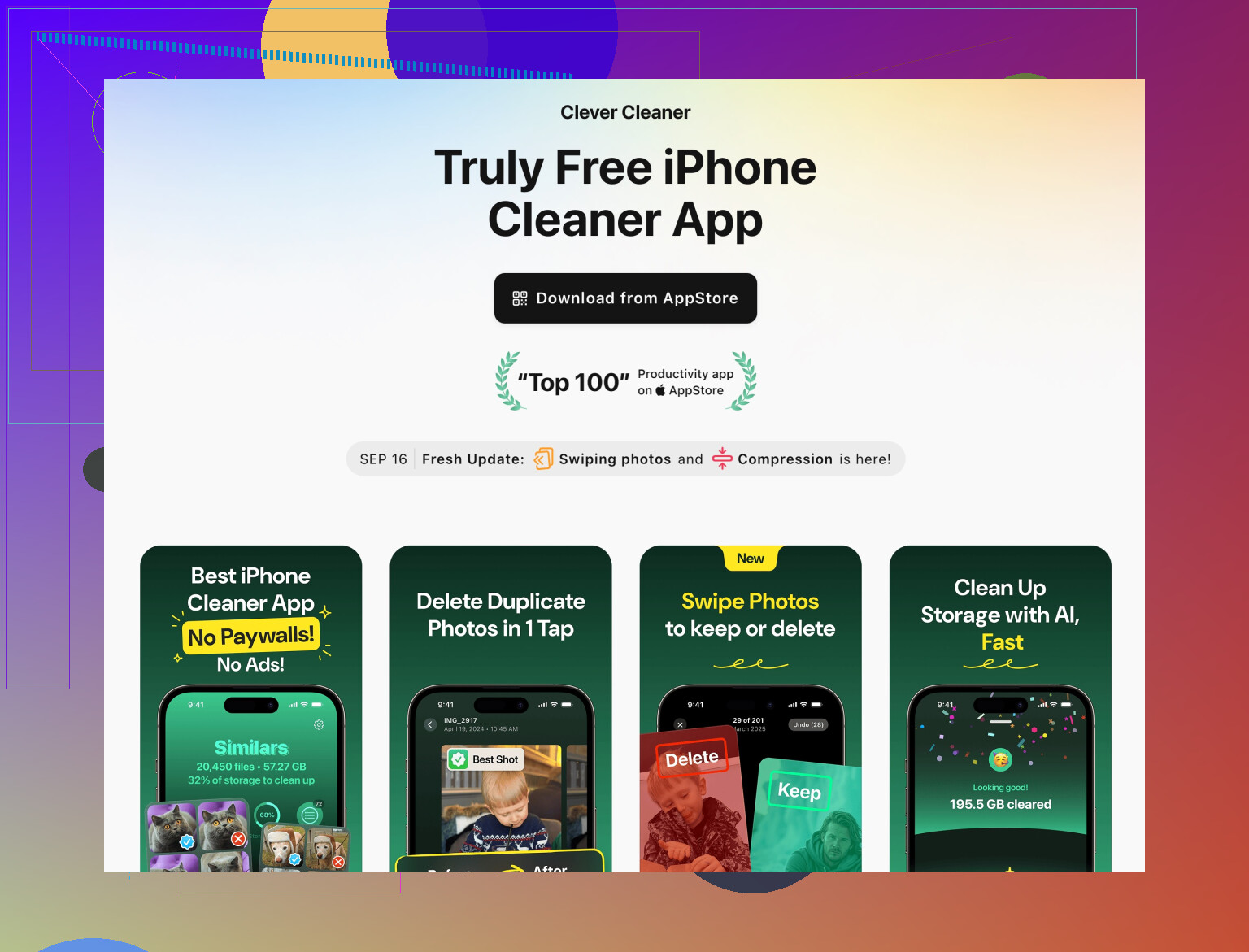 The built‑in Duplicates tab misses a lot, especially edited vs unedited versions, resized exports, etc. For that, a smart cleaner helps.The Clever Cleaner App for iPhone uses AI to detect duplicate and similar photos, blurry shots, and near‑identical bursts. It groups them, so you review once, then delete in bulk. Good if you have years of backups.