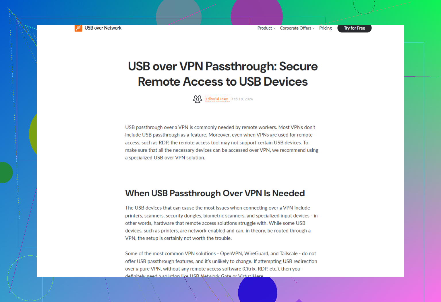 For more detail on getting USB devices working through a VPN tunnel and what setups are stable, this guide helps a lot: