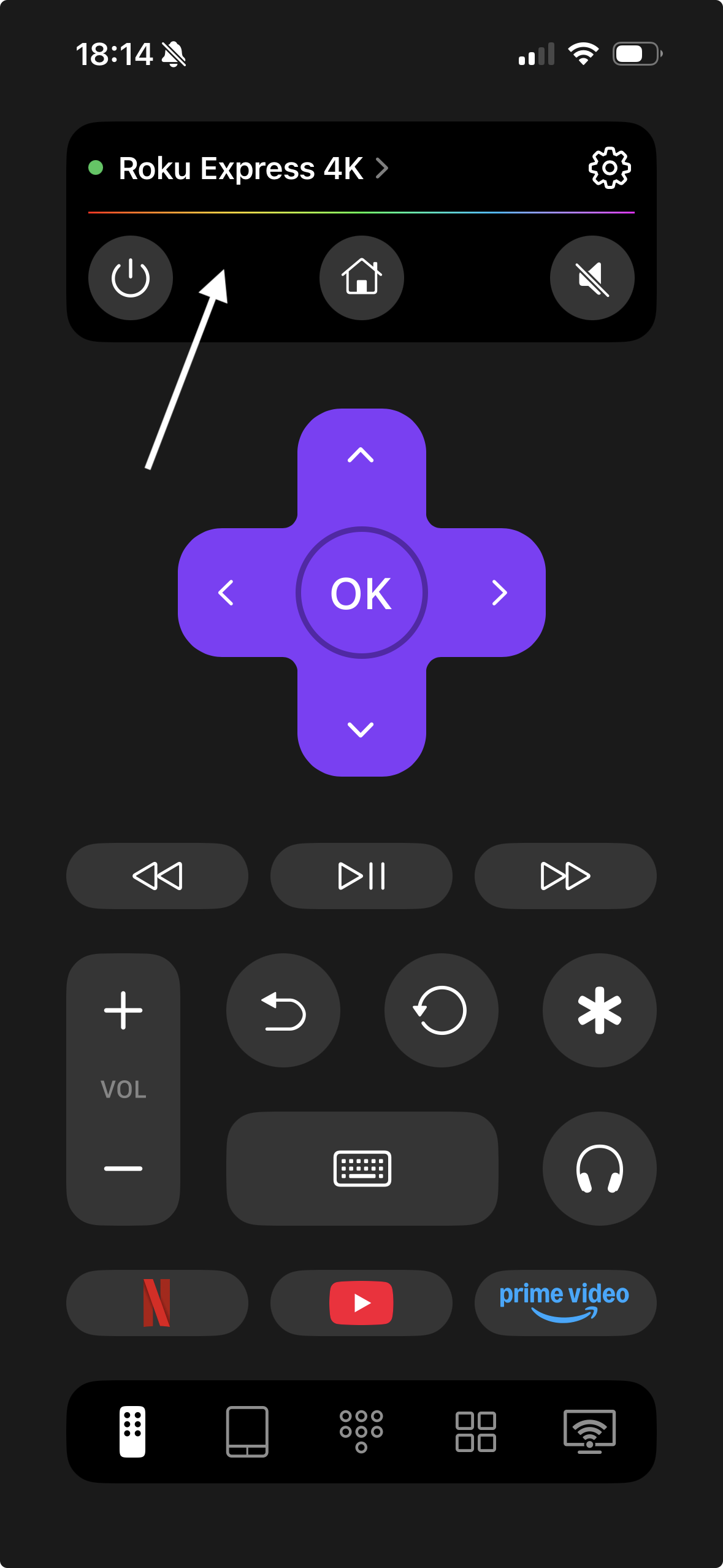 - Open de app, tik onderaan op “Remote”. Hij zou je Roku direct moeten vinden.