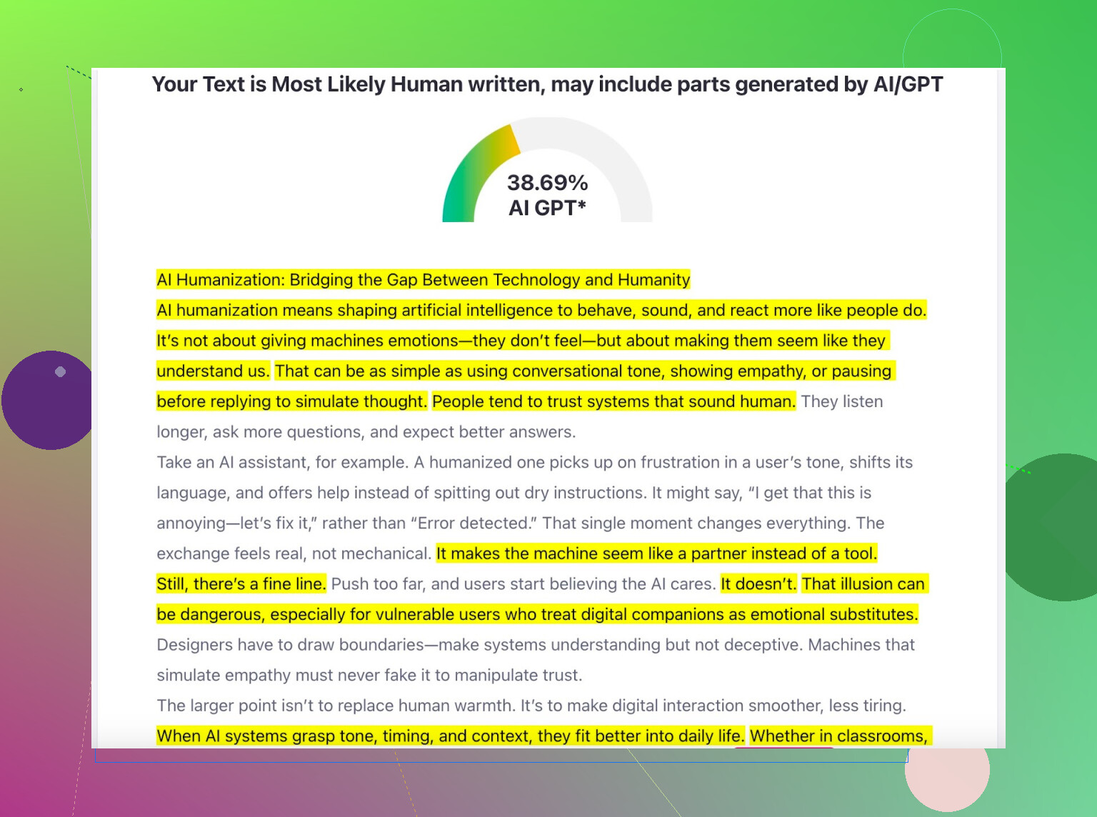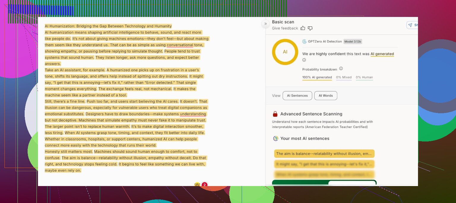 Wie schon gesagt: Die anderen – Humanize AI Pro, Quillbot (versucht, Fremdscham, gelöscht) und das überteuerte Walter Writes – verändern entweder an den Erkennungswerten kaum etwas oder machen die Texte mit Tippfehlern nur peinlich. Sogar trickreiche GPT-Prompts ersetzen nicht den Feinschliff, den echte Menschen einbringen – Detektoren sind nicht dumm und die meisten Leser auch nicht.