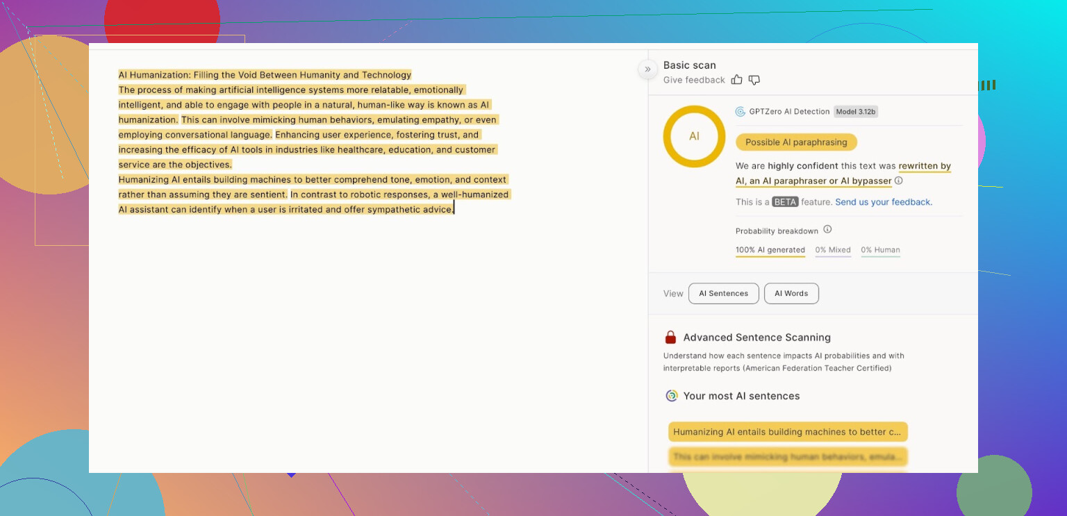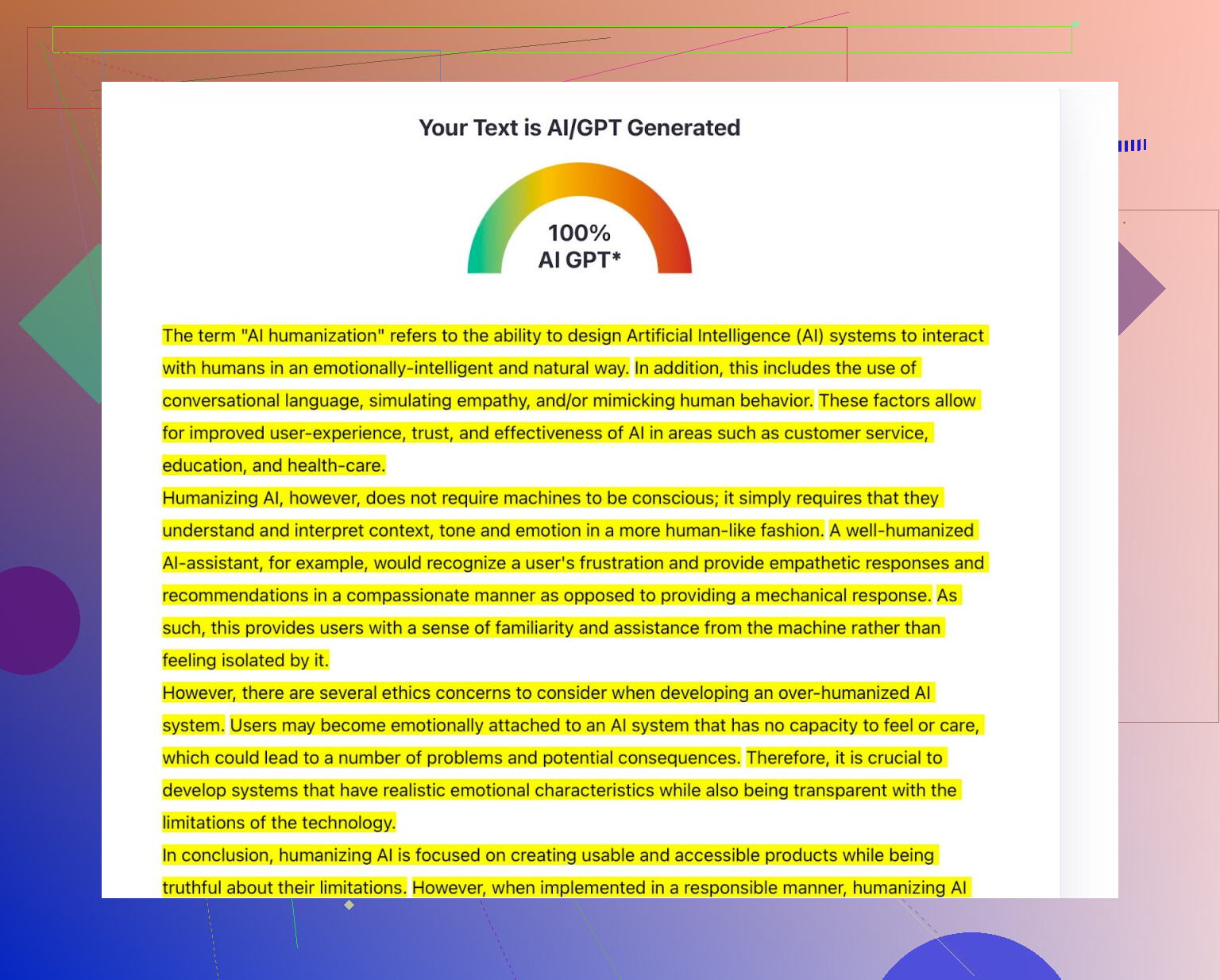 - ZeroGPT senkte die KI-Bewertung um magere 6%.
