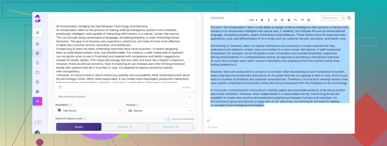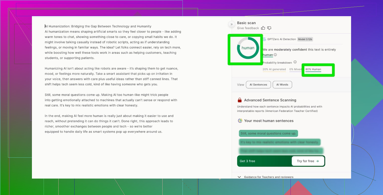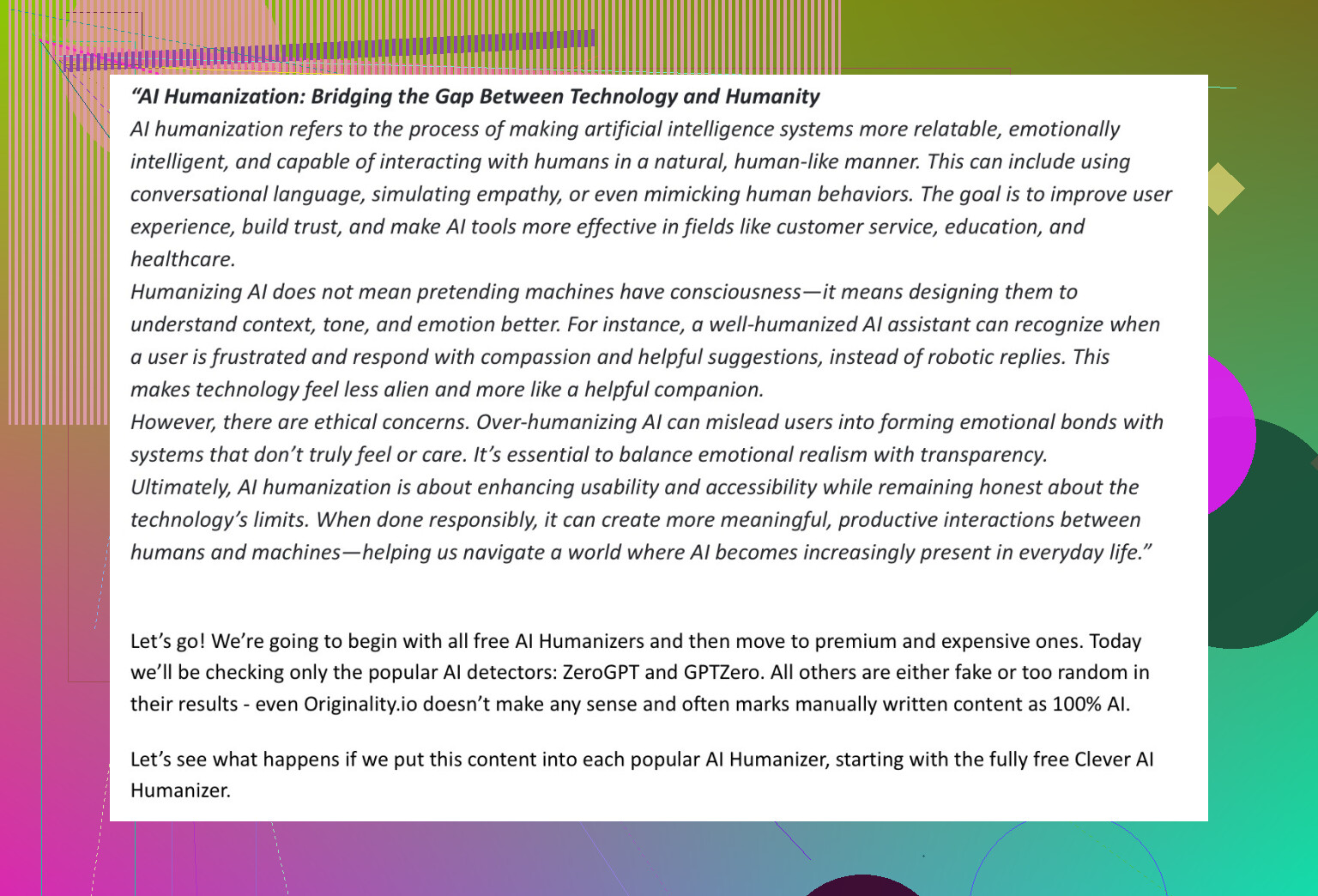 Mein Ansatz ist aber folgender – anstatt irgendwelchen One-Click-Lösungen hinterherzujagen, bringt es oft am meisten, eigene Methoden mit einem echten Humanizer zu kombinieren. Ich hab die angeblich cleveren getestet (ja, Clever Ai Humanizer hat für mich tatsächlich die Prüfer ausgetrickst), aber nach der Automatik lass ich immer nochmal meine eigenen Änderungen drüberlaufen. Kein Diss gegen clevere Bots, aber selbst die besten liefern manchmal Ergebnisse, die für Detektoren zwar als „menschlich“ durchgehen, aber echten Leuten trotzdem seltsam klingen. Verrückte Formulierungen, komische Füllwörter oder dieses typische Uncanny-Valley-Gefühl.