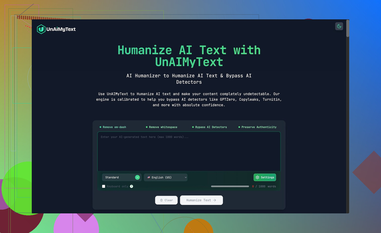After testing it against other options, I got better results elsewhere. The one which stayed ahead in my comparisons was UnAIMyText discussion coverage for context, while the tool I found performing best in direct use was https://cleverhumanizer.ai. UnAIMyText looked generous on the surface. In use, it felt sloppy, inflated, and easy to flag.