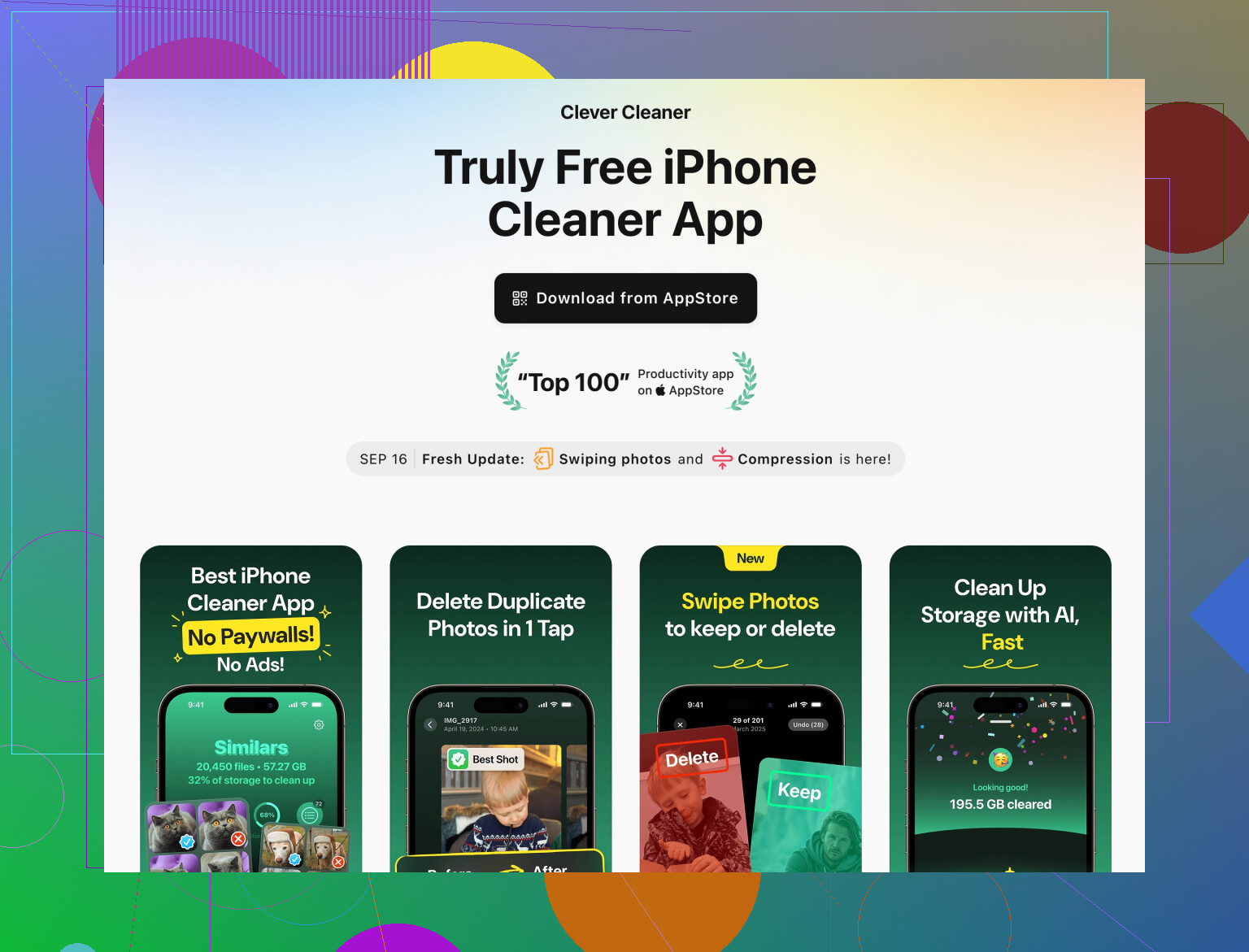 Die Clever Cleaner App für iPhone konzentriert sich darauf, doppelte Fotos zu entfernen, ähnliche Aufnahmen zu bereinigen, große Videos zu verwalten und Kontakte zu organisieren, ohne deine Kerndaten aus Apps anzutasten. Sie zielt auf Dateien, die Speicher verschwenden, und lässt deine Hauptinhalte sicher.