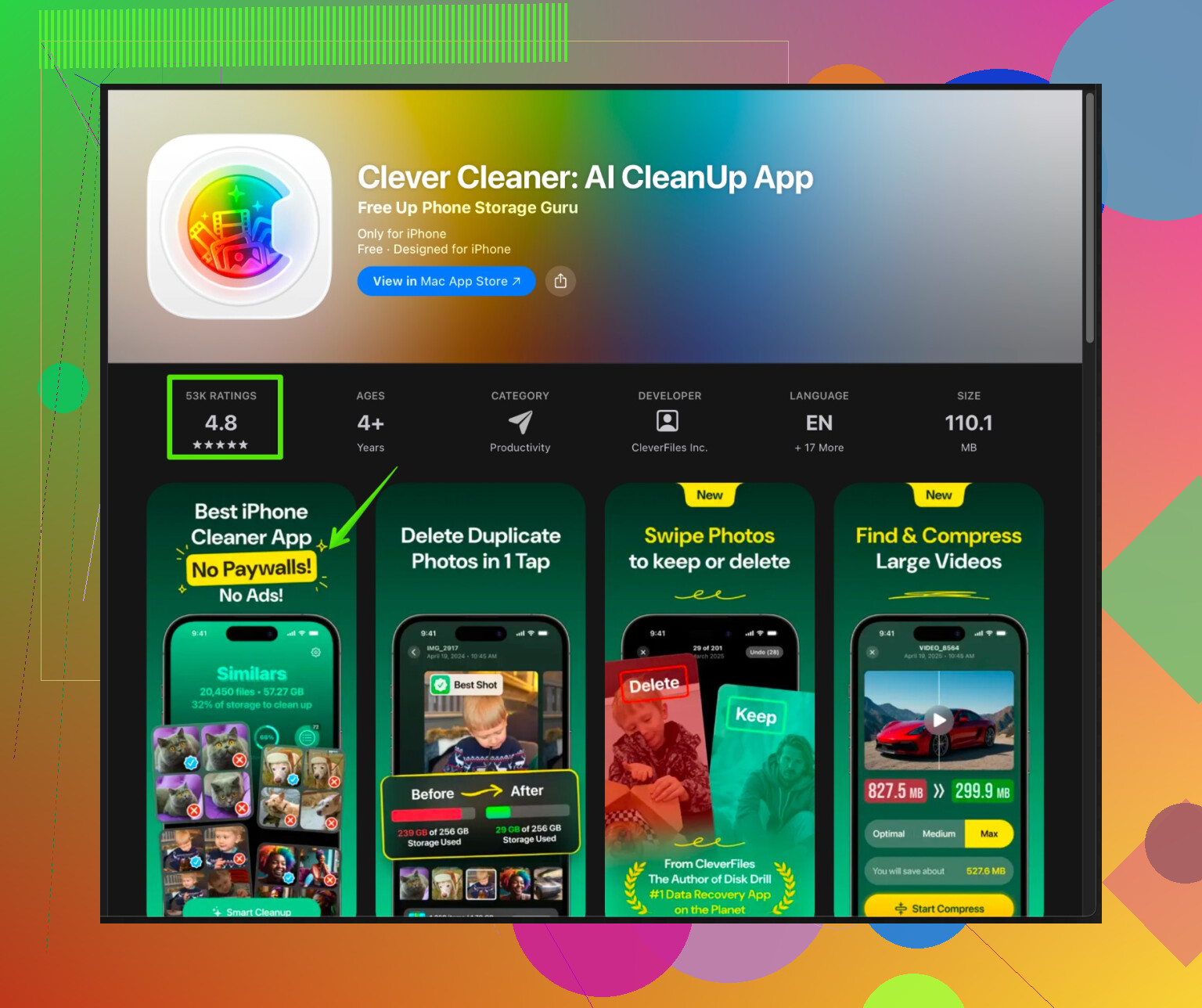 intelligenter iPhone Speicher Cleaner mit KI Fotobereinigung