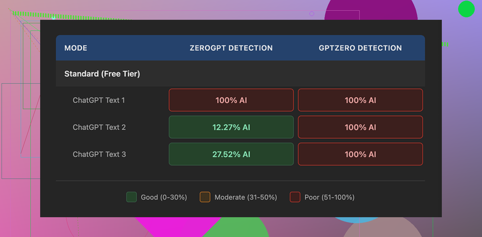 - In most user tests I’ve seen (including my own), the drop in AI detection scores is more consistent.